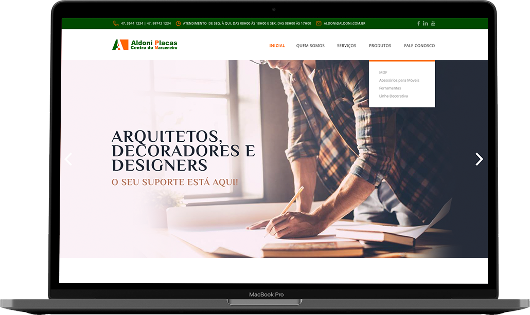 Apresentar o novo posicionamento da marca para os consumidores em geral e empresas, fez com que a Aldoni buscasse um novo website institucional. Um site que refletisse a qualidade dos serviços prestados e os produtos por ela vendidos, onde as pessoas acessassem o mesmo e conseguissem identificar a sua necessidade de primeira e assim fossem direcionados somente ao que realmente é de do seu interesse. Moderno, prático e 100% responsivo, o novo website da Aldoni possui o melhor que tem em tecnologia de desenvolvimento para web.