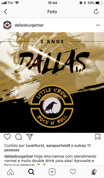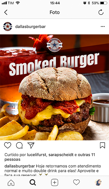 O Dallas Burger Bar busca comunicar os eventos e noites especiais da casa, comunicando de maneira descontraída o que a casa tem de melhor, música, comida e chopp artesanal. Com a utilização das redes sociais, a Pandorum conseguiu junto com o Dallas, fidelizar os seu clientes e ampliar o seu movimento! Publicações de memes e publicações que geram engajamento dos usuários são sacadas para envolver os clientes e assim relembrar o nome do bar!